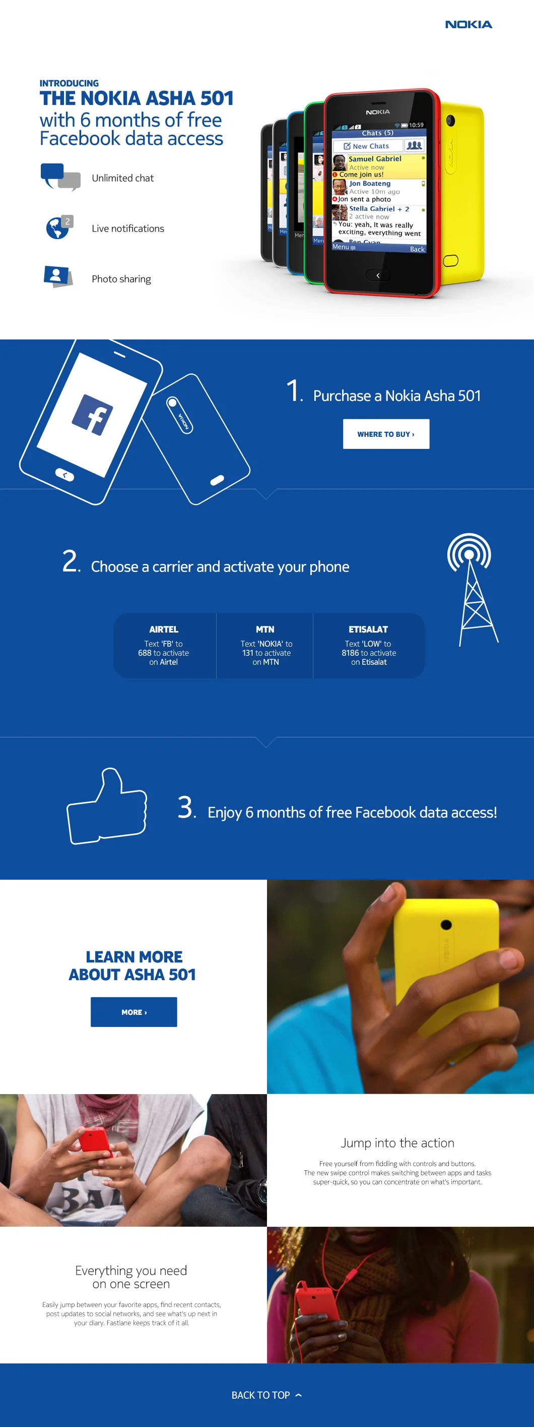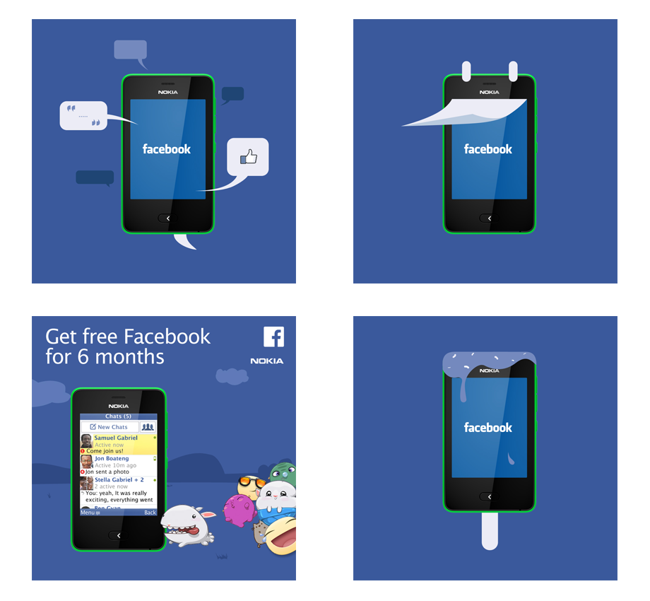Various advertising initiatives to raise Facebook’s profile in emerging markets. Facebook partnered with Nokia to provide free data with the purchase of the Nokia Asha 501.